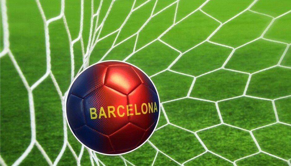 Balón fútbol cuero Barcelona con los colores del F.C. Barcelona.