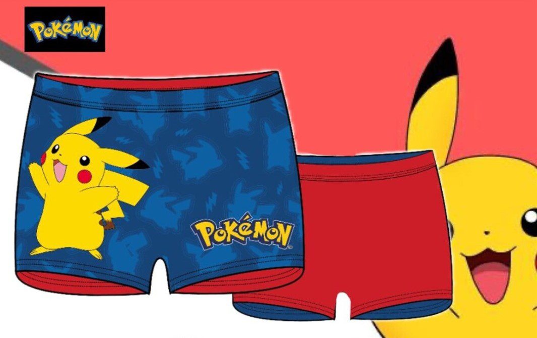 Bañador de Pikachu tipo boxer. Composición: 85%Poliéster 15%Elastano