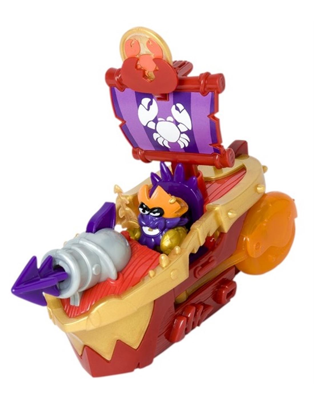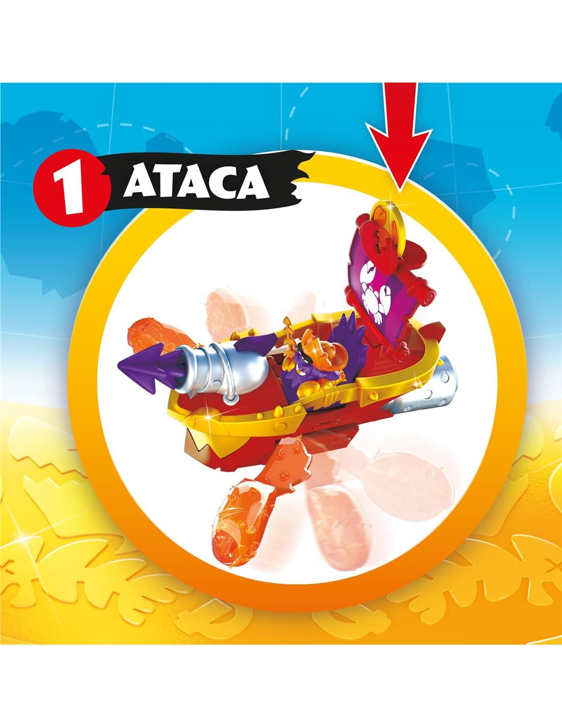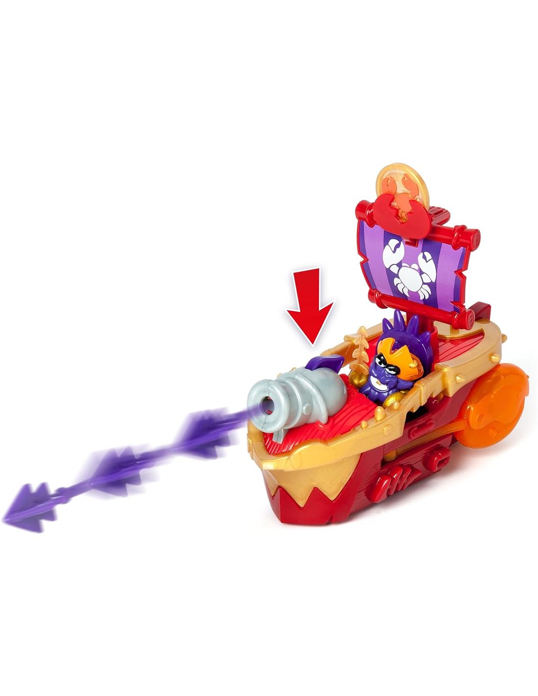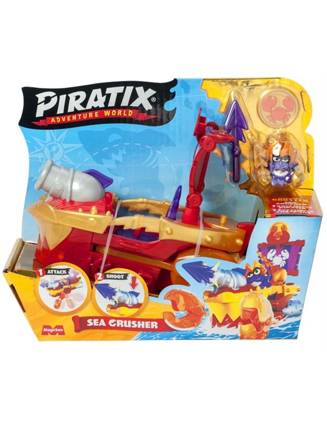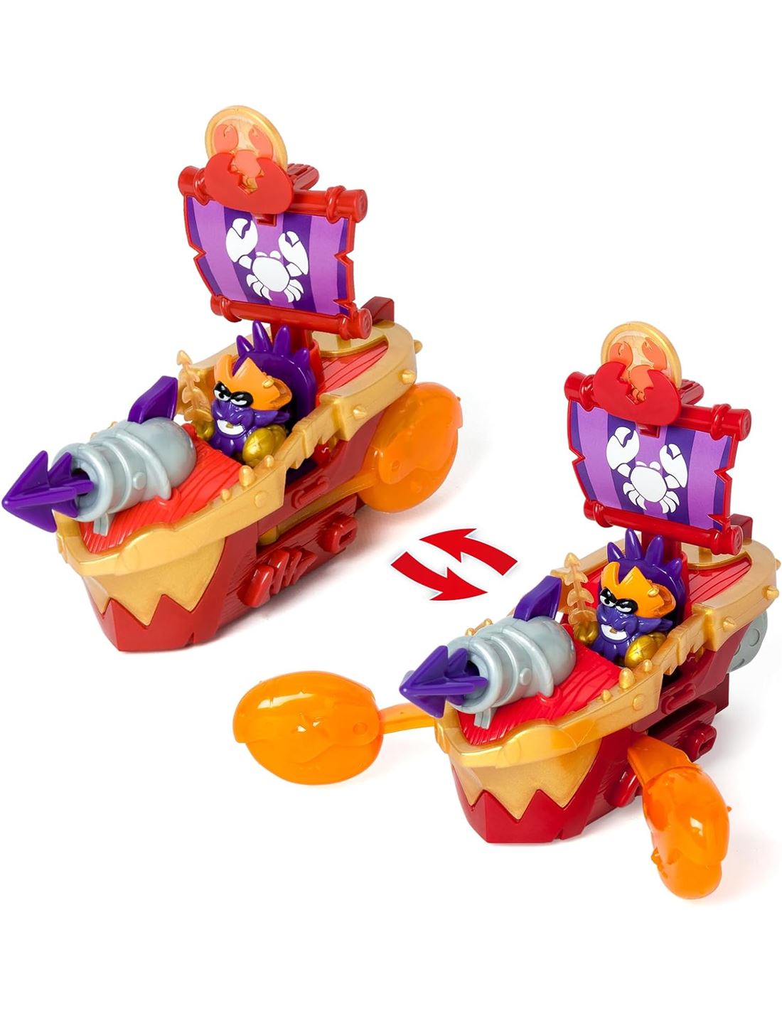 Barco pirata en forma de cangrejo con el Piratix exclusivo Captain Lobster. Usa su tesoro exclusivo para mover sus pinzas y disparar el cañón. Edad: 4 años