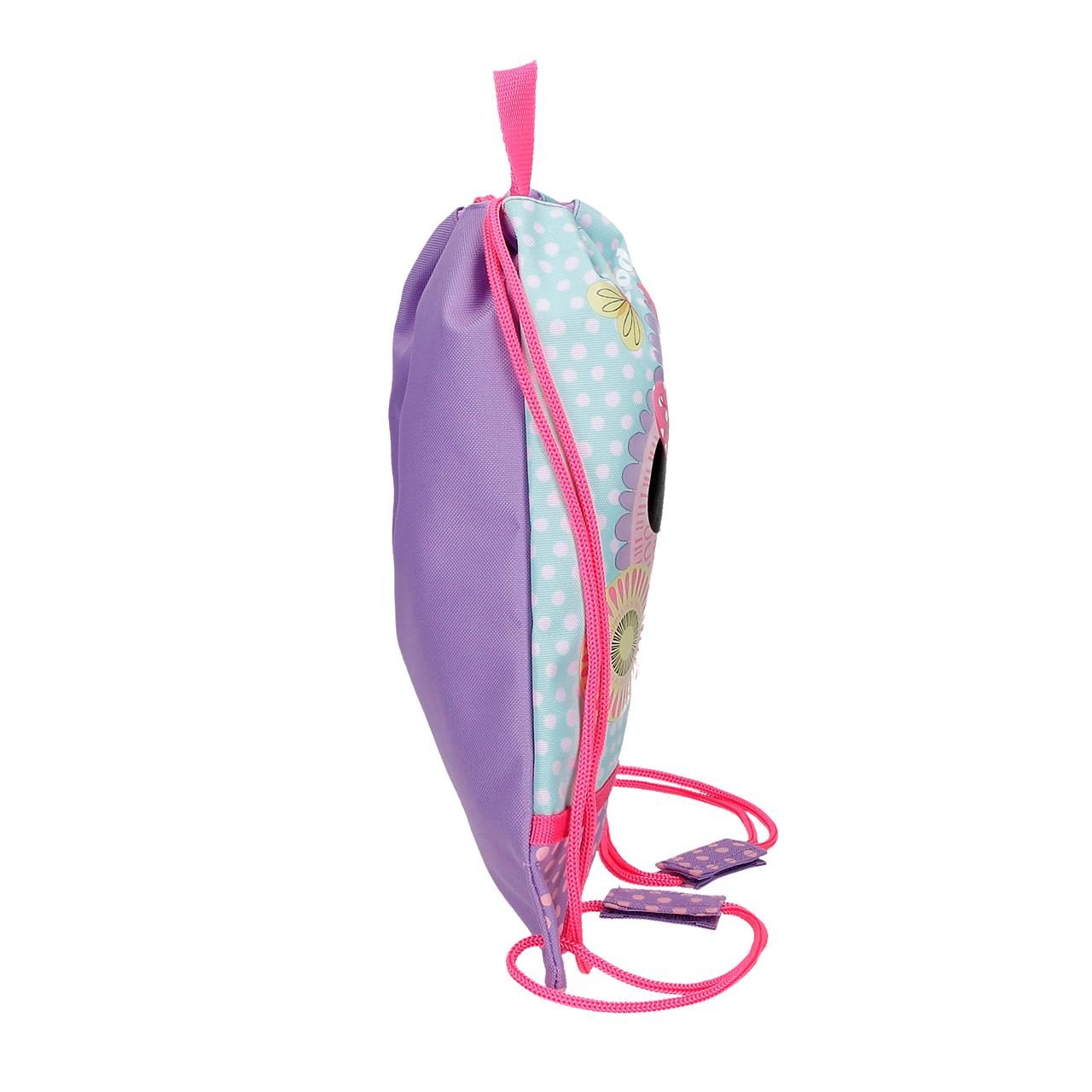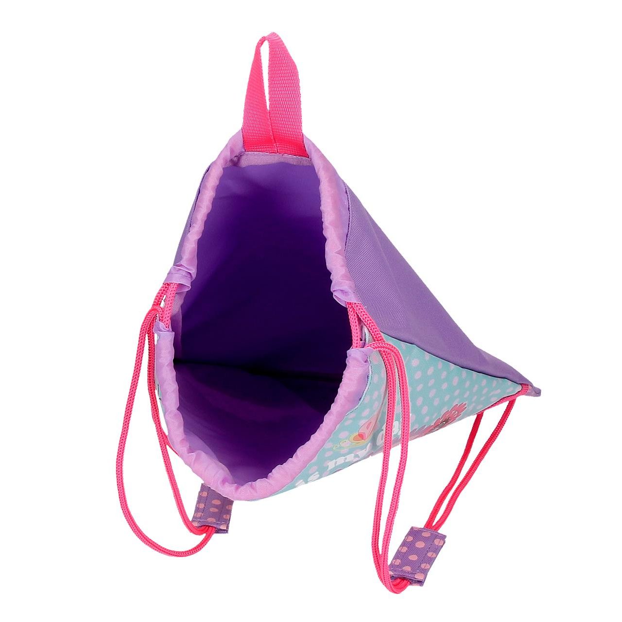 Bolsa de merienda de 27 cm x 34 cm fabricada en Poliéster. Cierre fruncido que sirve para llevarla como mochila. Ligera y práctica para ofrecer una mayor comodidad. Asa superior para colgar.