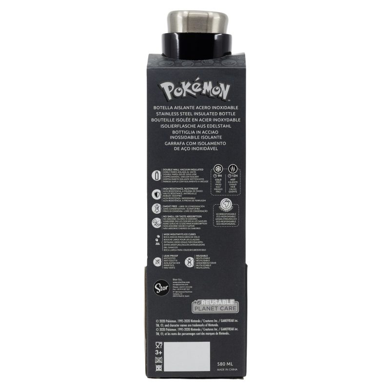 Botella reutilizable térmica de acero inoxidable de 580 ml de Pokemon Botella de acero inoxidable de alta calidad, ideal para mantener tus bebidas calientes y frías. Se trata de una botella térmica, personalizada con los mejores personajes de cine, televisión, videojuegos, cómics y libros. Disponible en una gran variedad de colores y diseños, te acompañará allá donde vayas. Características: – Libre de BPA – Doble pared que mantiene la temperatura: 9 horas el frío y 12 horas el calor – Realizada en acero inoxidable – Capacidad: 580ml.