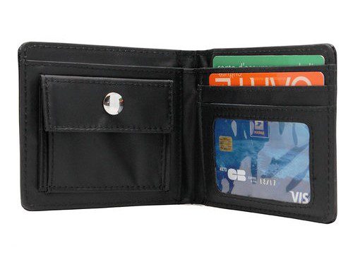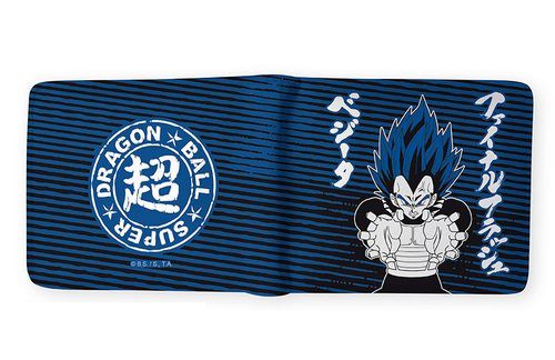 Cartera de Vegeta con varios compartimentos para tarjetas y billetes -Material: vinilo -Dimensiones: 9,5x11cm cerrada, 9,5x22cm abierta