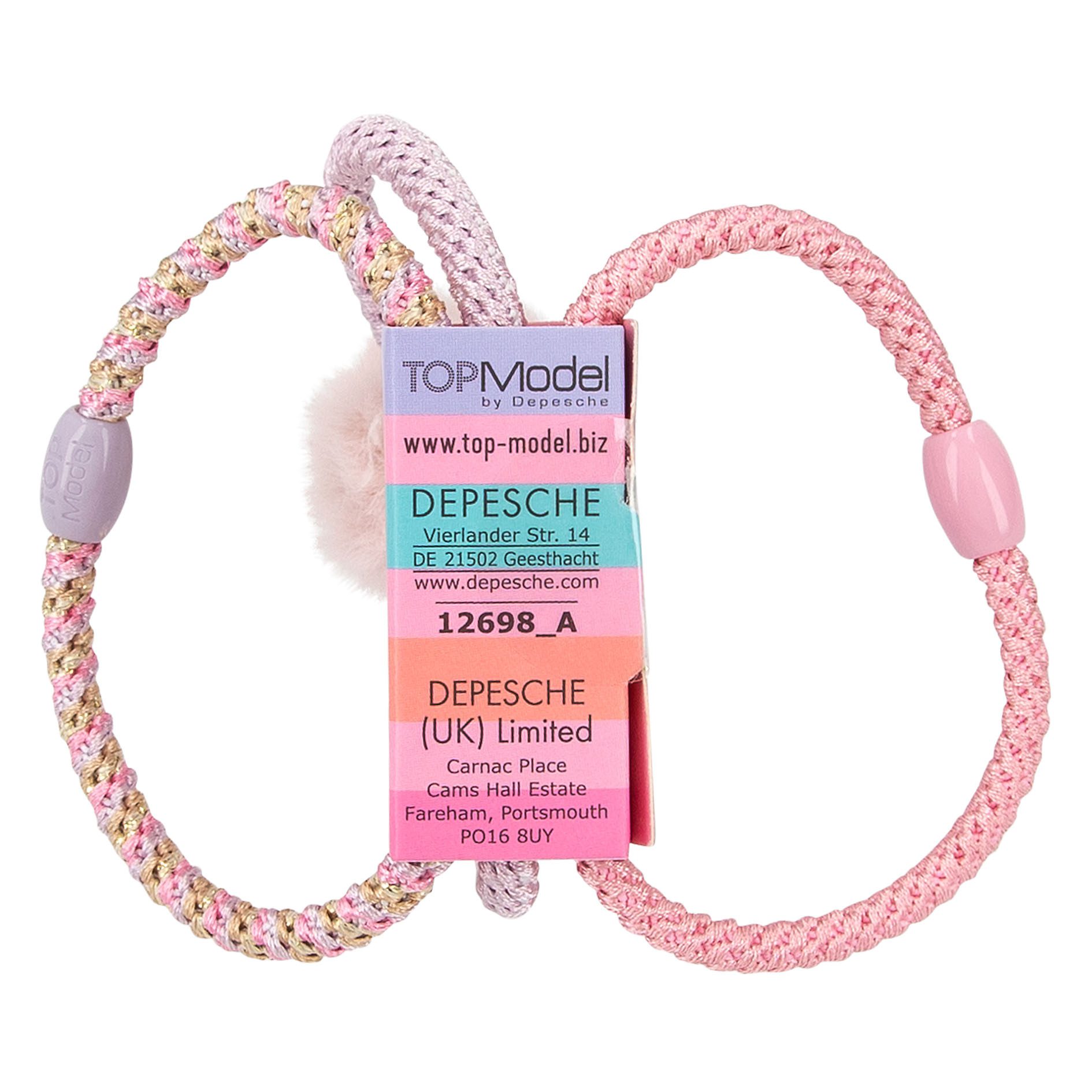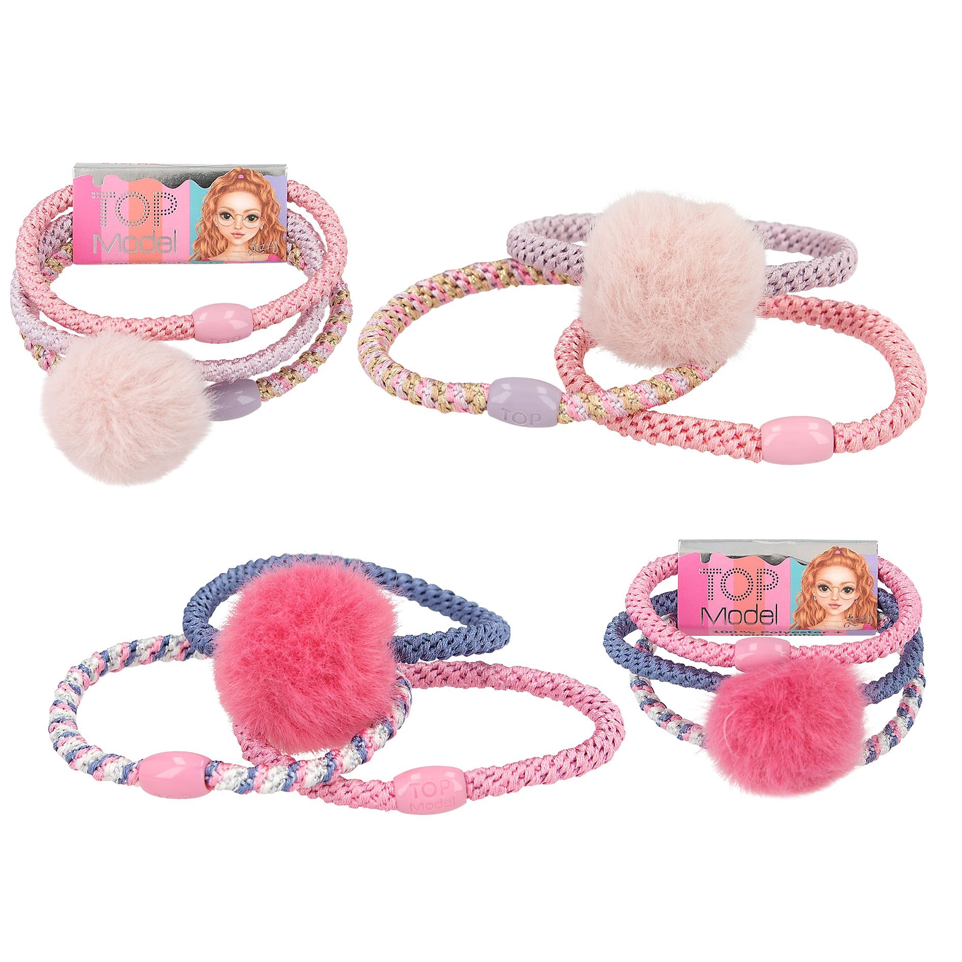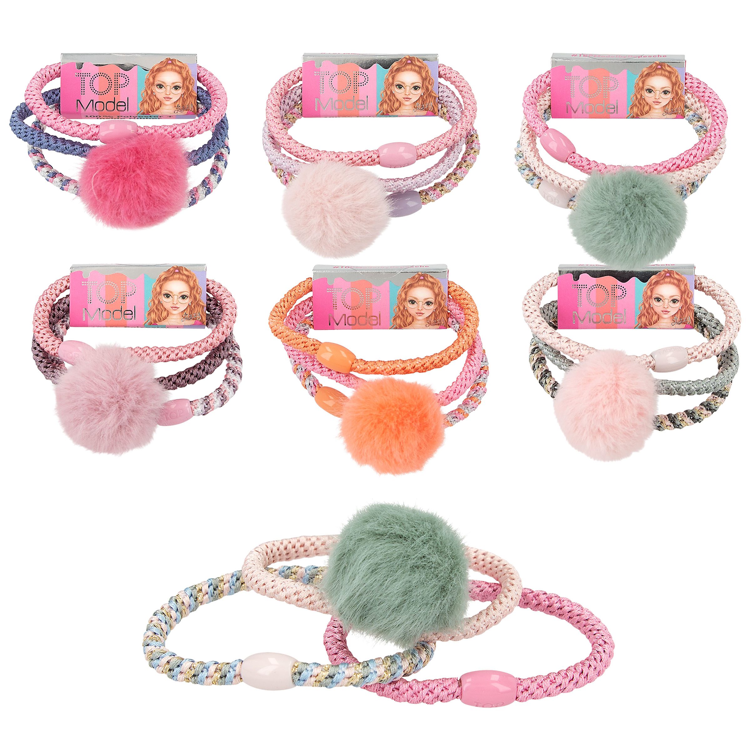 Las gomas para el pelo de TOPModel adornadas con una perla pueden utilizarse para el pelo o para lucirlas en la muñeca como estilosísimas pulseras. Cada set se compone de tres gomas en colores coordinados (1 goma monocolor, 1 goma monocolor con pompón de peluche, 1 goma de varios colores). Disponibles 6 sets diferentes. Modelo y/o color según disponibilidad. Indicar preferencia en apartado de información adicional.