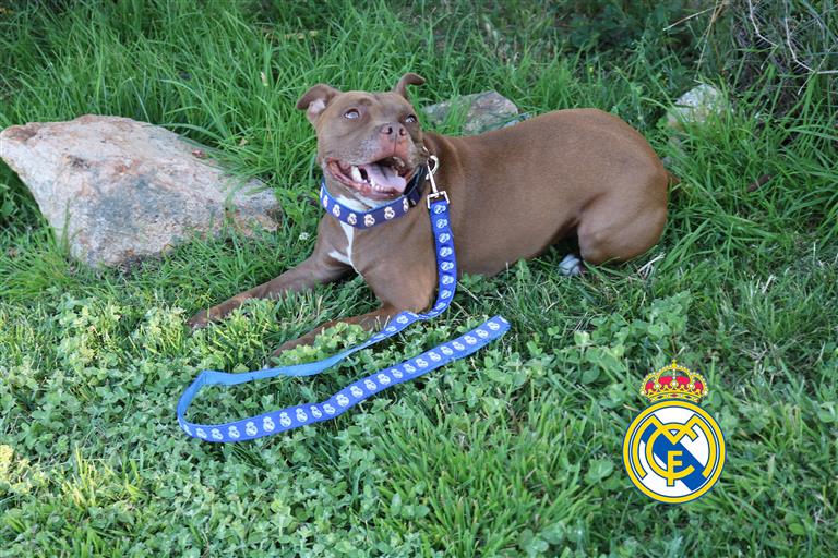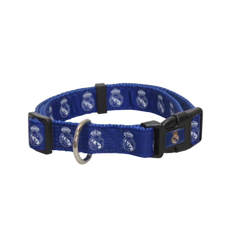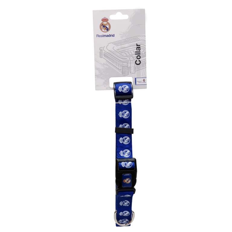 Original collar con escudos del Real Madrid. CARACTERÍSTICAS: Este collar realizado con materiales de alta resistencia es ajustable mediante hebillas. Además, gracias a su cierre de clip es fácil de poner y quitar Tu mascota también podrá lucir los colores de tu equipo!.