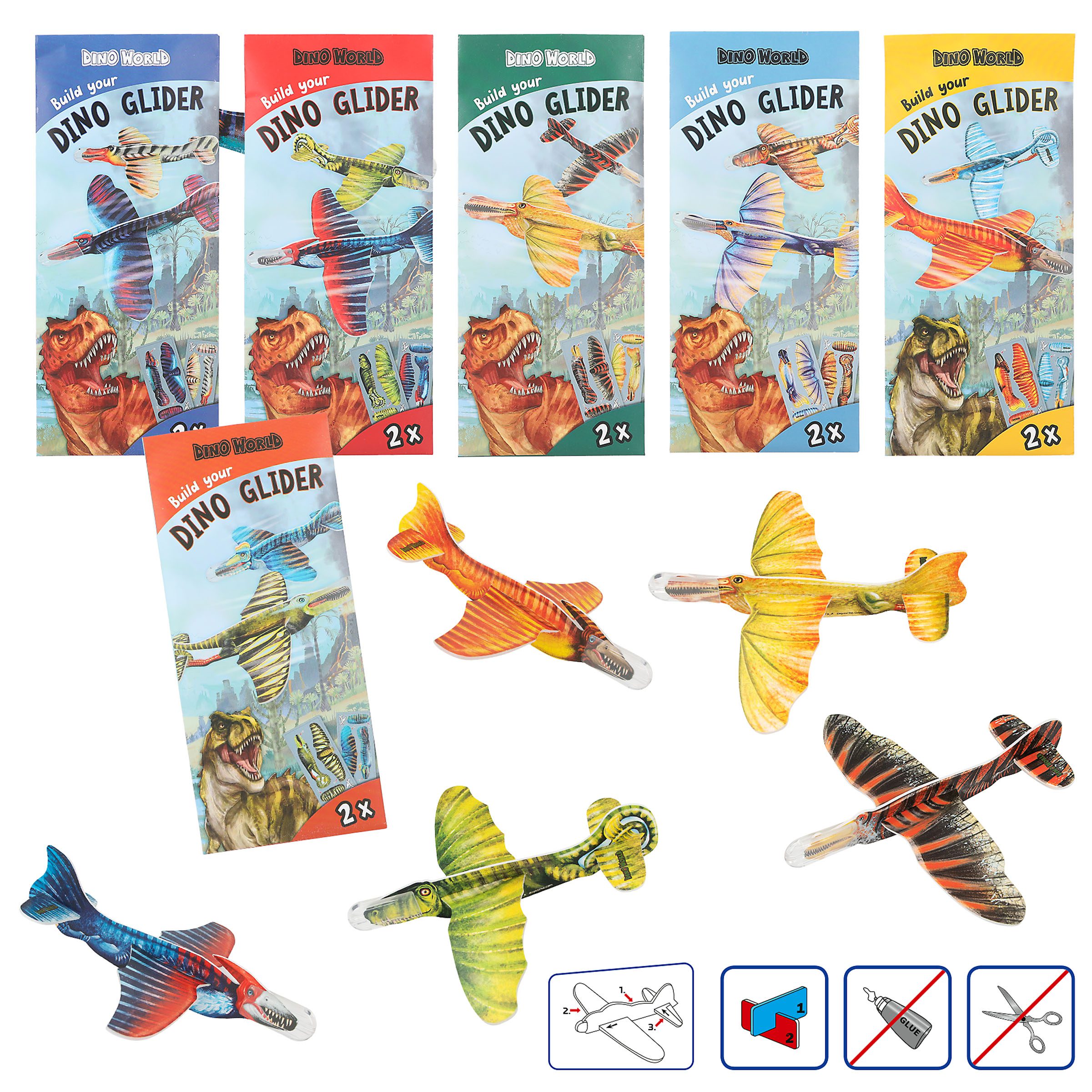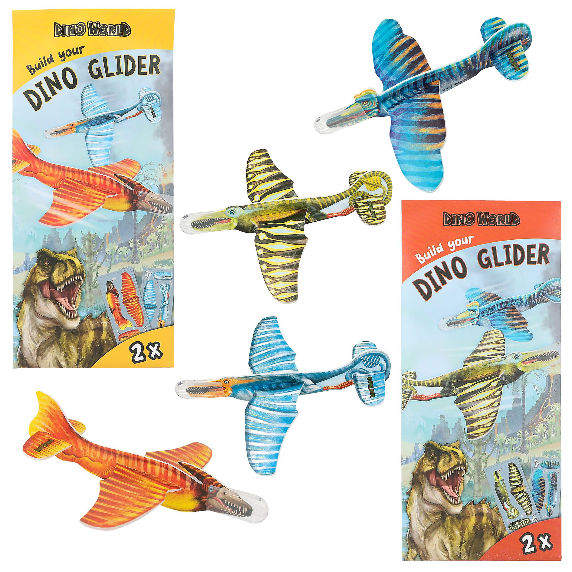 Atención, dinosaurios en pleno vuelo! Estos chulísimos dinosaurios voladores de poliestireno son muy fáciles de montar: extraer las piezas del cartón, encajar y rematar con el hocico de plástico. Y ya están listos para volar! Disponibles 6 diseños distintos con dos dinosaurios voladores por embalaje. Modelo y/o color según disponibilidad. Indicar preferencia en apartado de información adicional.