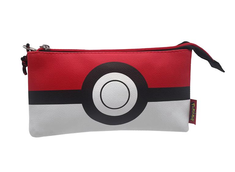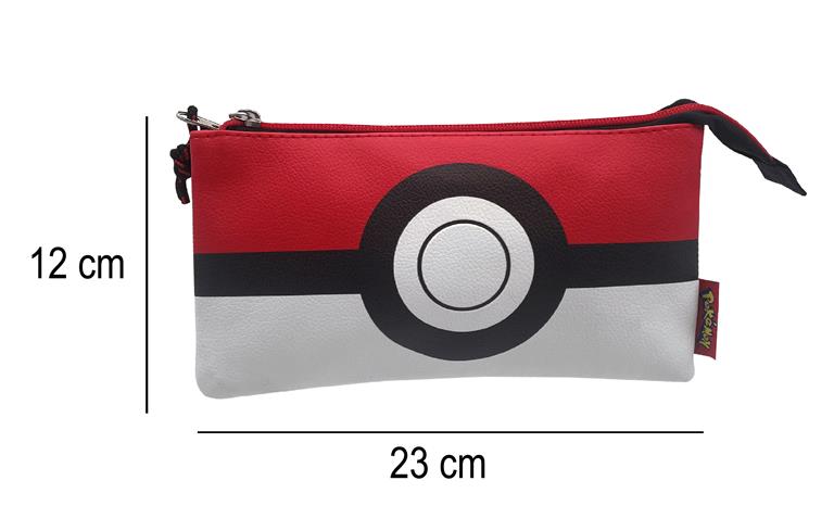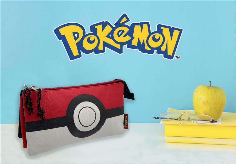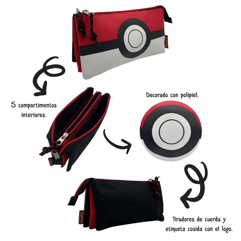 Marca estilo con este espectacular estuche triple con un original diseño de la pokeball. Podrás además complementarlo con el resto de accesorios de la colección Pokeball Estuche diseño pokeball con doble cierre (general e interior). Cremalleras metálicas muy resistentes y tiradores de cuerda para faciliar su apertura y durabilidad. Cuenta con tres amplios compartimentos y dos más pequeños donde incluso podrás llevar tus cartas Pokémon