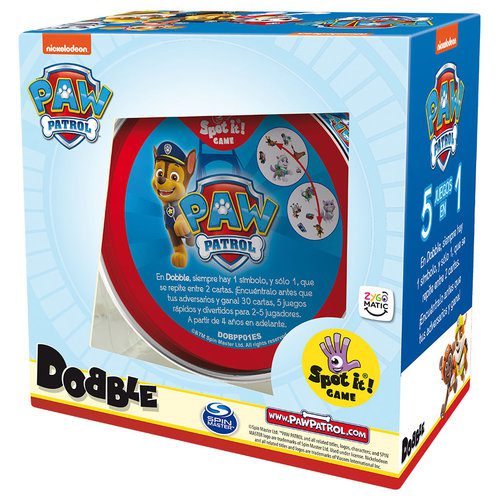 íLos queridos personajes de la patrulla canina se unen a la diversión de Dobble! Si nunca habéis jugado a Dobble, coge dos cartas al azar y ponlas boca arriba sobre la mesa a la vista de todos los jugadores buscad el símbolo idéntico en las dos cartas (misma forma y mismo color, sólo el tamaño puede variar) El primer jugador que encuentre este símbolo, lo nombra y roba dos nuevas cartas que pondrá sobre la mesa repetid esta operación hasta que todos los jugadores hayan entendido que siempre hay solamente un símbolo idéntico entre dos cartas y ya está Pues ahora prepárate, porque Dobble contiene varios mini-juegos, cada cual más divertido e hilarante, aunque el objetivo siempre es el mismo: ser el más rápido, ya que todos los jugadores juegan a la vez.
