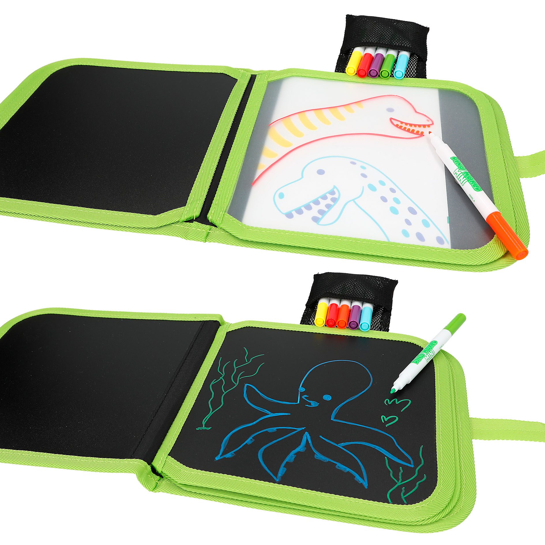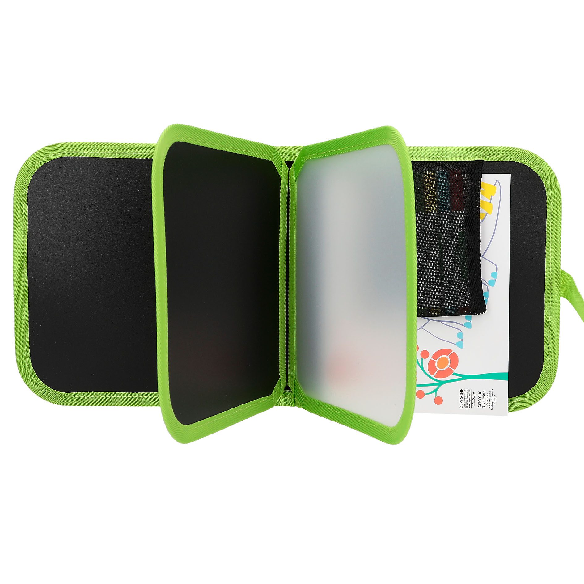Para divertirse y divertirse tantas veces como se desee coloreando dinosaurios! En el cuaderno textil para colorear de Dino World Mini los pequeños fans de los dinosaurios podrán desarrollar su creatividad coloreando las cuatro páginas en negro y calcar las preciosas plantillas en una página transparente. Y al terminar de colorear solo hay que pasar un papel de cocina húmedo para borrar! En el estuche adicional adosado se incluyen 6 lápices de colores diseñados para las manos de los más pequeños.