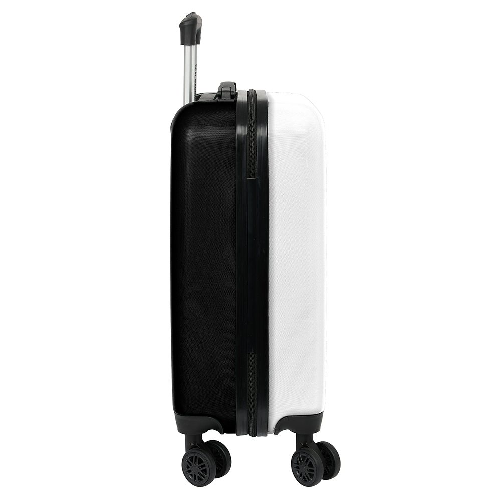 Maleta de cabina de 20». Cierre de seguridad con candado. Interior forrado, con bolsillo de red con cremallera. Panel interior con cremallera para separar ambos lados de la maleta. Cintas elásticas con cierre de PVC para sujetar el equipaje. Asa de mano flexible de PVC con sujeción de goma en la parte superior. Ruedas dobles y giratorias 360º, para facilitar su movilidad desde cualquier posición. Asa con pulsador en el mango extensible en 2 posiciones de 100 cm de altura. Material ABS PC. Medidas: 34x55x20cm