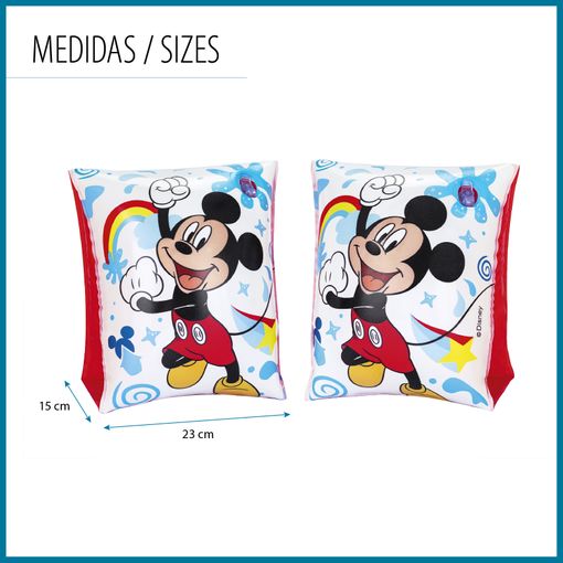 Manguitos hinchables para niños de 3 a 6 años. Diseño de Mickey Mouse doble cámara de aire. Medidas:17×12 cm