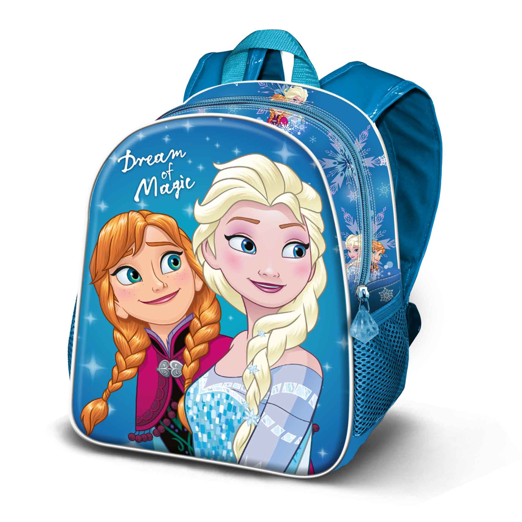 Mochila Basic Frozen 2 Dream. Frozen 2. Mochila escolar de un compartimento. Cuerpo exterior con dos bolsillos laterales en malla, correas al hombro acolchadas y banda trasera para trolley. Medidas: 31cm x 39cm x 15cm