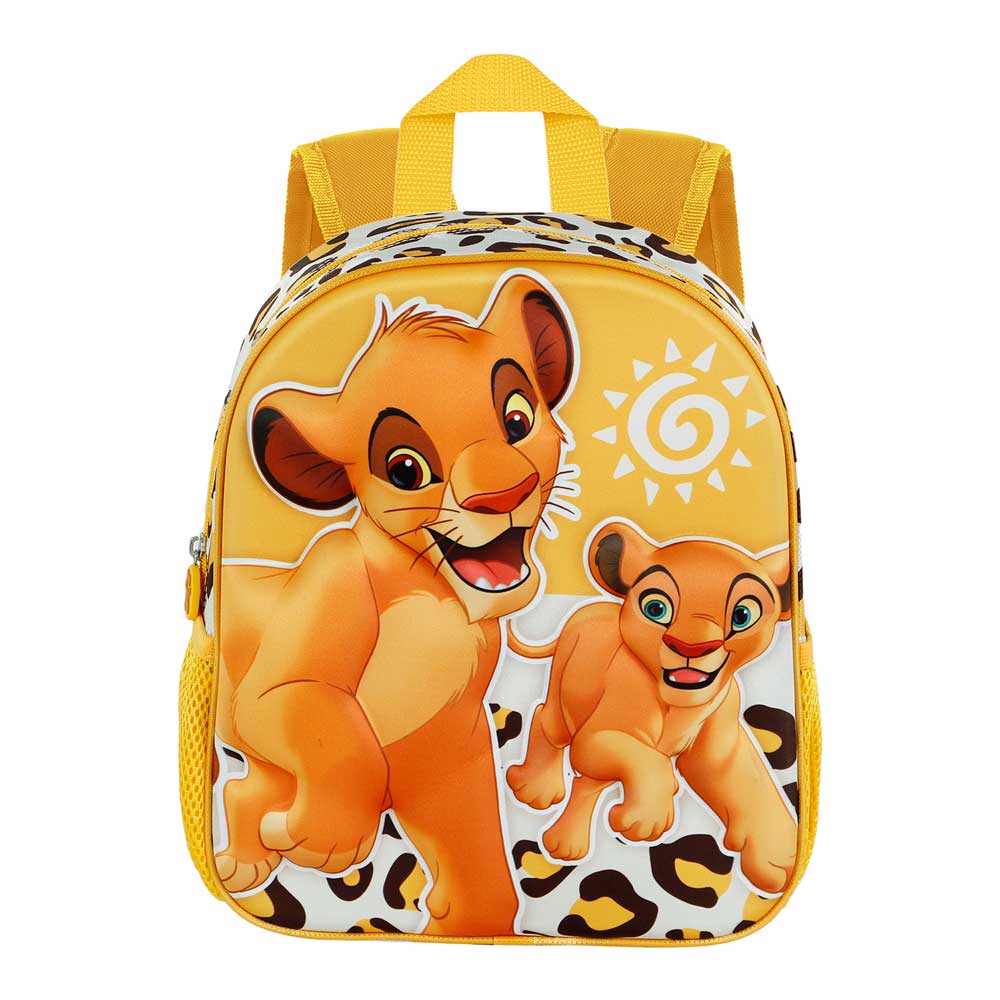 Mochila 3D Pequeña El Rey León Africa. El Rey León. Mochila preescolar con relieve frontal 3D. Compartimento principal con cremallera y forro interior. Dos bolsillos laterales de malla. Medidas: 26cm x 31cm x 11cm