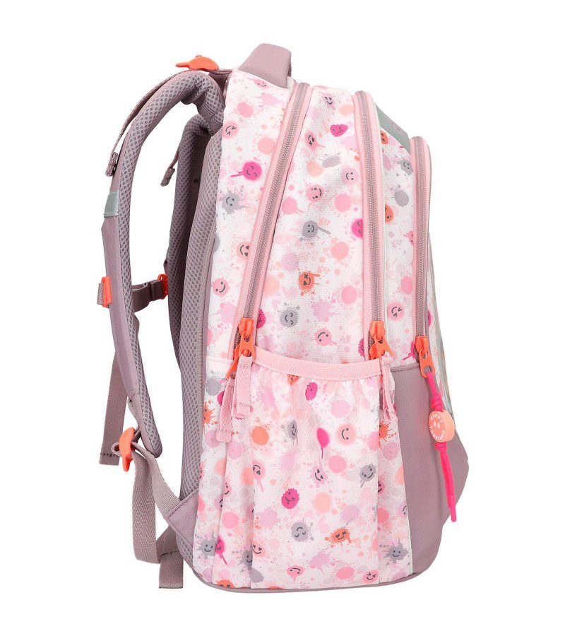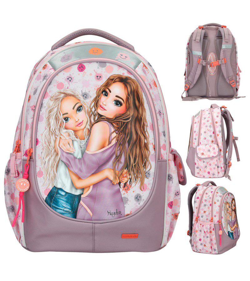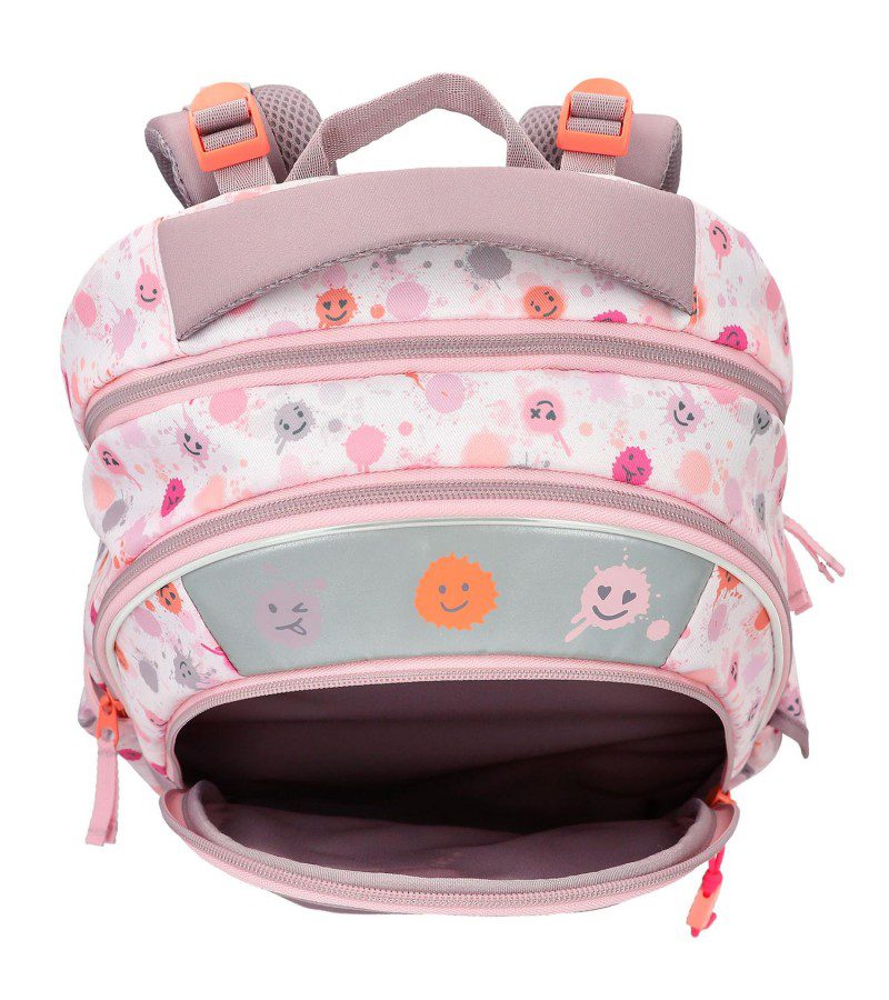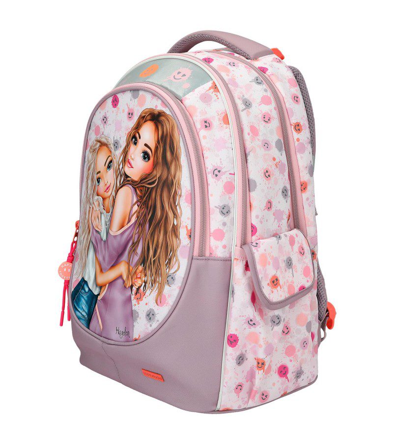 La mochila que transmite buen humor: colores suaves, alegres smileys , imagen de dos modelos de TOPModel cool y monísimo colgante de smiley en el tirador de la cremallera delantera. Pero esta mochila también convence por ser muy funcional: Tan solo pesa 990g, a pesar de tener un volumen de 19,6 l y disponer de un compartimento principal espacioso, un compartimento intermedio, bolsillo delantero y bolsillos laterales para botellas. Tirantes de ajuste, parte trasera transpirable, bolsillo secreto con cremallera en la espalda, anilla para colgar y muchos reflectores para garantizar la visibilidad en la oscuridad. En el suelo lleva un revestimiento antihumedad y antimanchas.