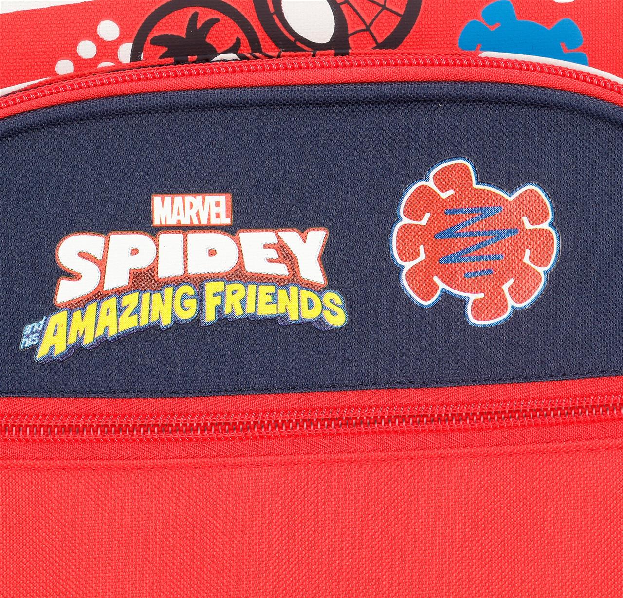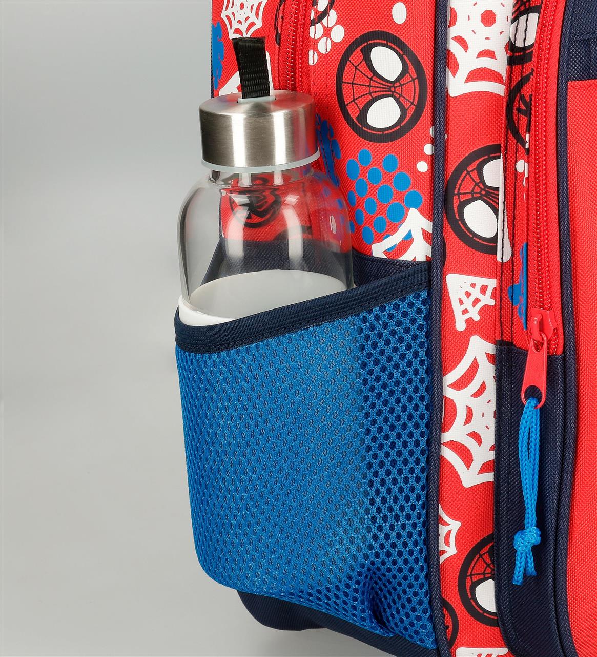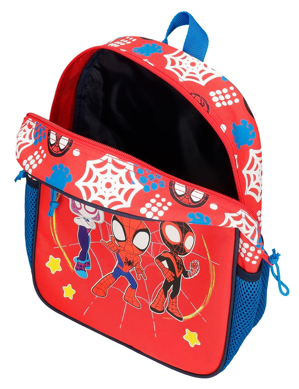 Mochila de 27 cm x 33 cm x 11 cm fabricada en poliéster. Dos bolsillos laterales para guardar el paraguas, la botella de agua o cualquier accesorio pequeño. Tirantes anchos, ergonómicos y acolchados que se adaptan perfectamente a la espalda. Bolsillo frontal con cremallera para mejorar la organización.