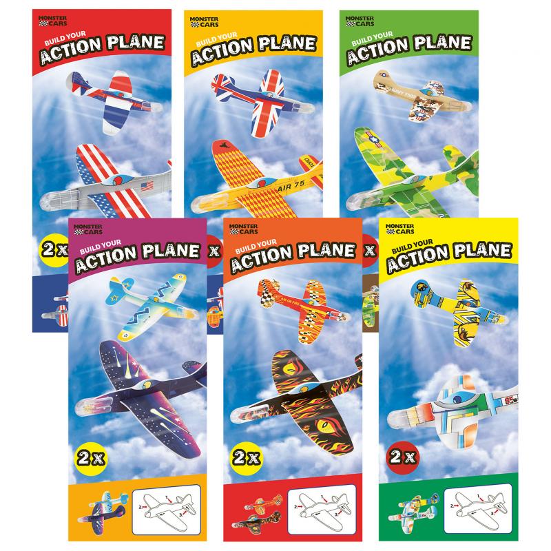 Todos los niños vuelan para hacerse con ellos! Estos planeadores de poliestireno multicolor son muy fáciles de montar. Existen 6 sets disponibles, con 2 aviones distintos cada uno.