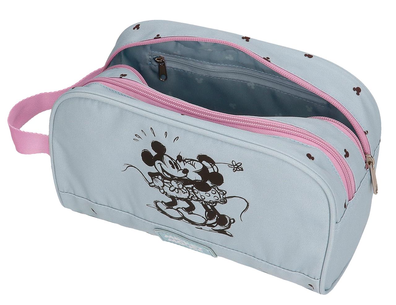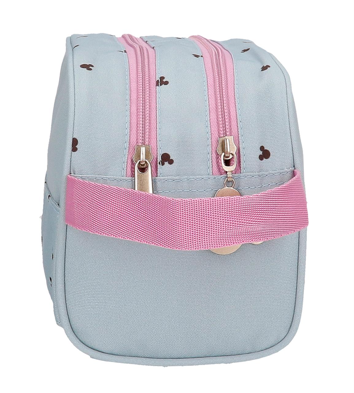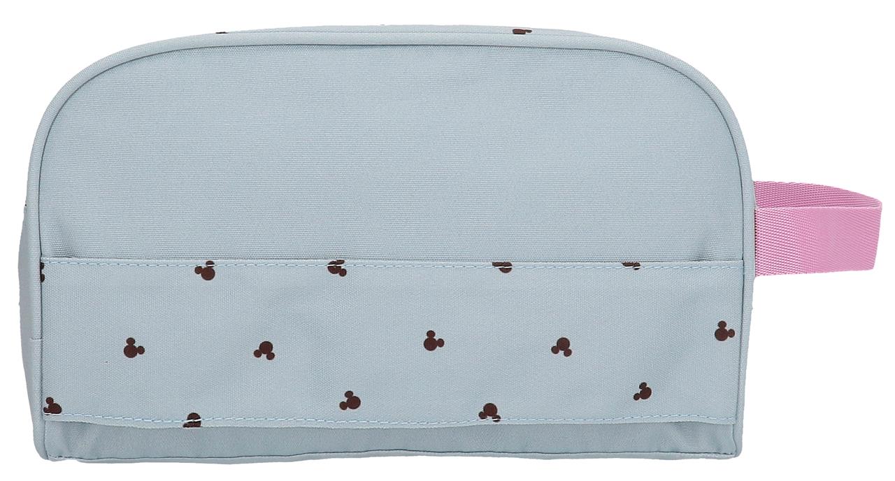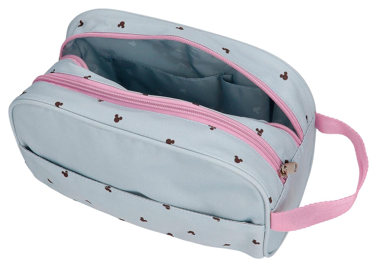 Neceser de 26 cm x 16 cm x 11 cm fabricado en Poliéster. Dos compartimentos y tres bolsillos interiores, uno de ellos con cremallera, para llevar perfectamente ordenados los accesorios de aseo y los productos de belleza. Banda trasera para adpatarlo al trolley cuando viajes Asa lateral.