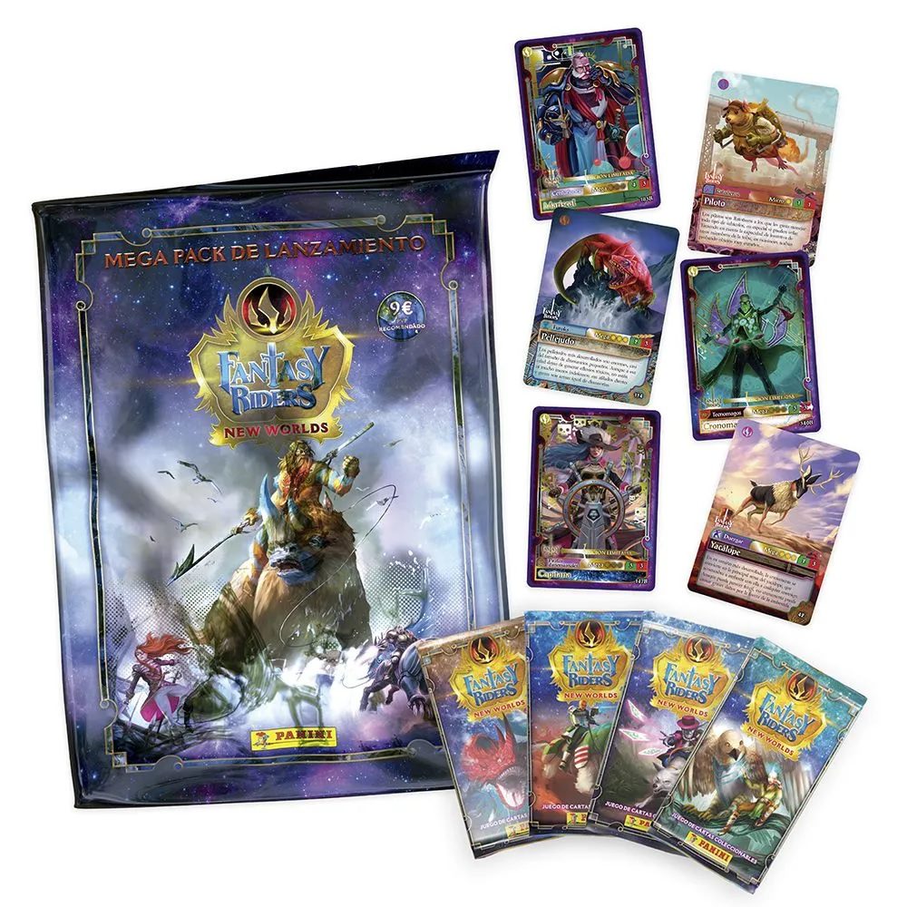 El Megapack de Lanzamiento de la magnífica colección de Trading Cards FANTASY RIDERS – NEW WORLDS 2023 te permite obtener en exclusiva el Archivador de la colección, el Tablero de Juego, la Guía Oficial, 4 sobres con 32 cards, Tablero de Juego y 10 cartas Edición Limitada.