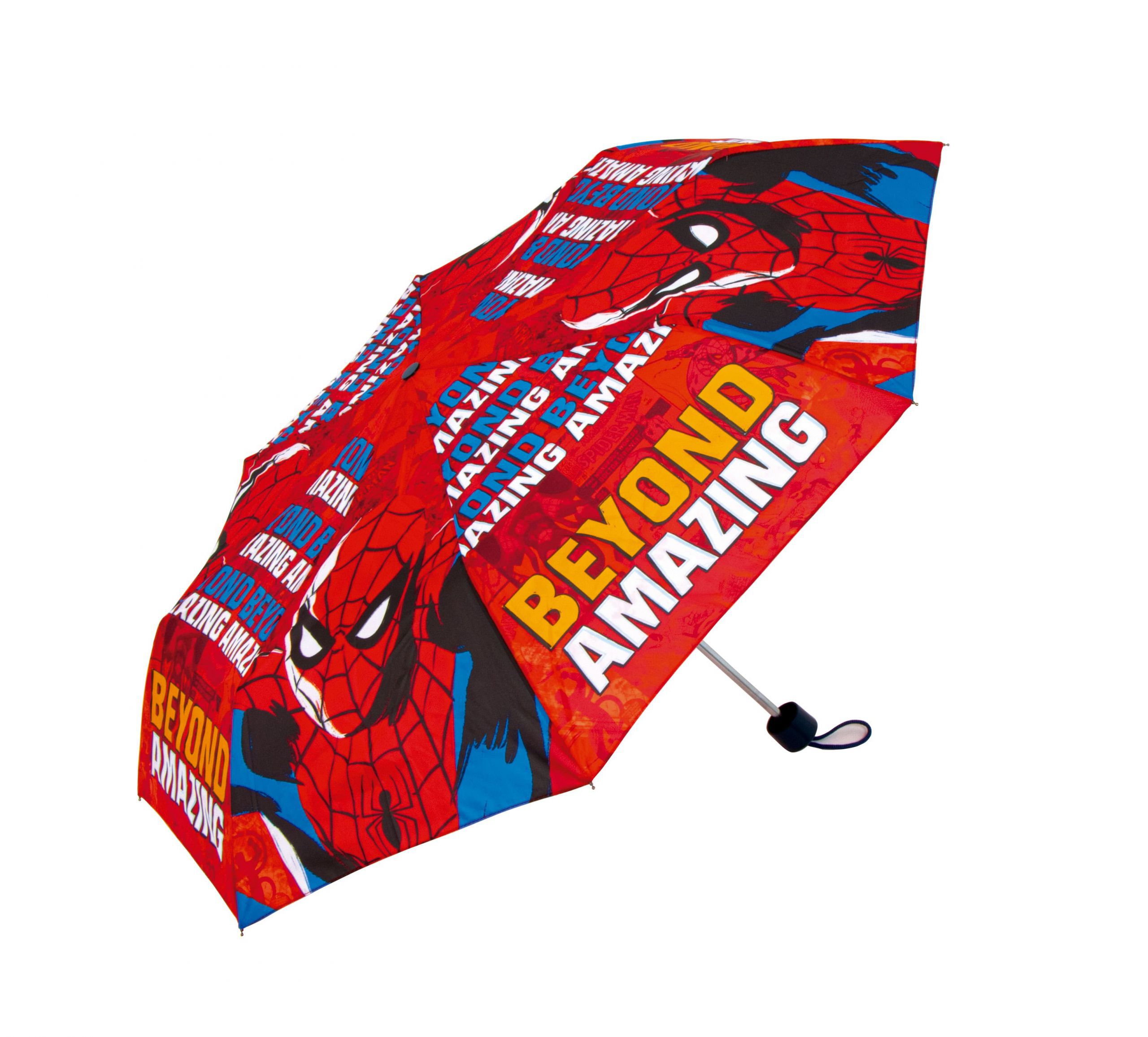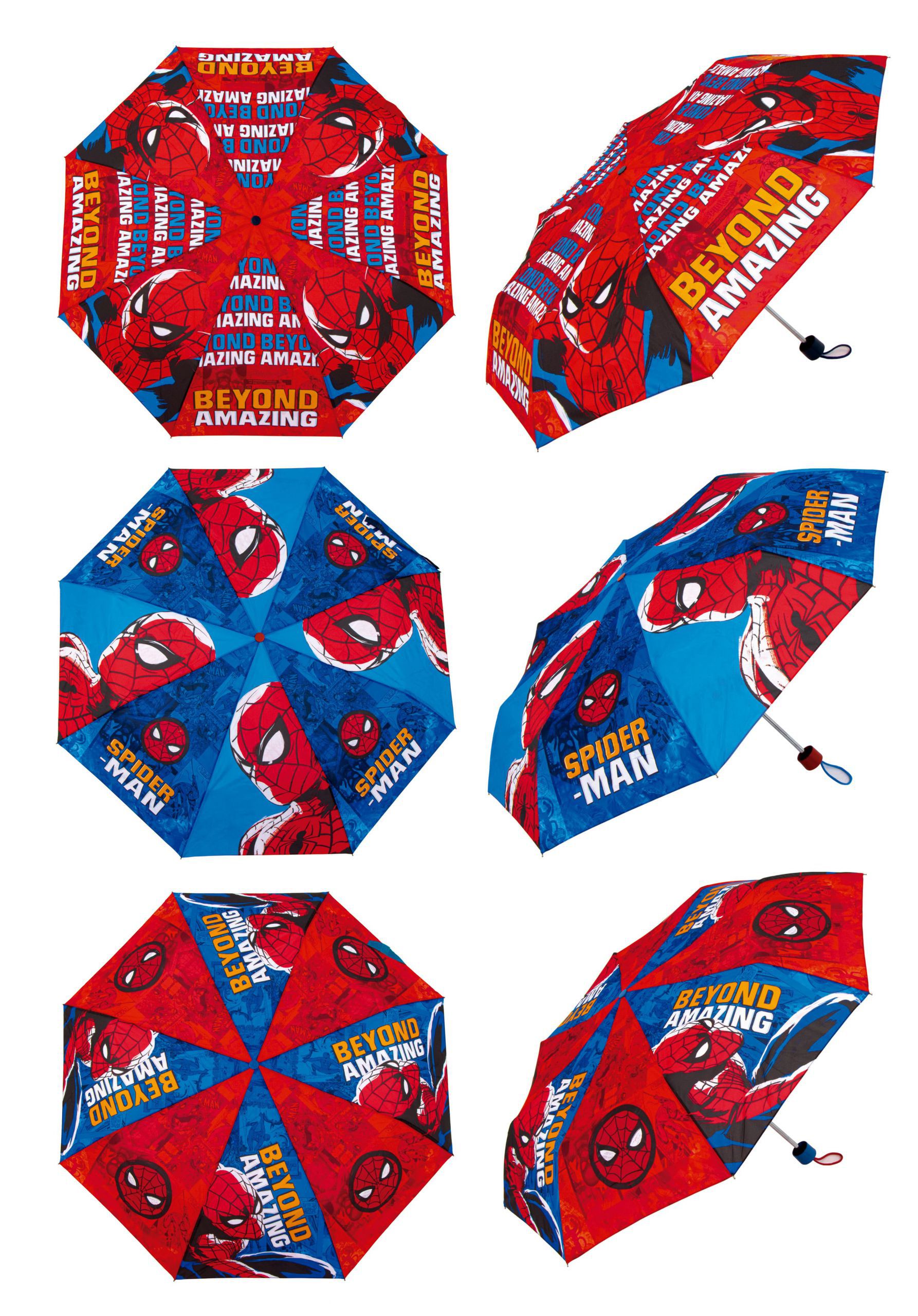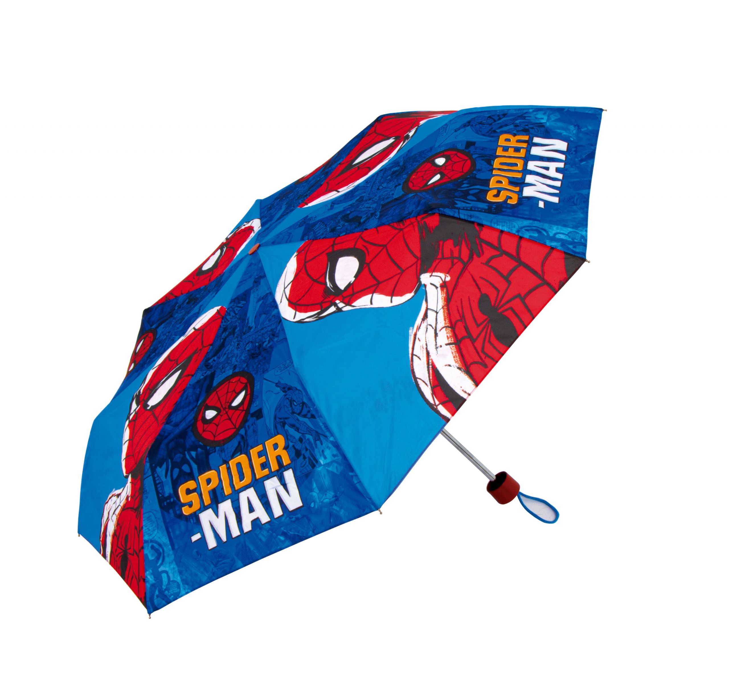 Paraguas de poliéster plegable de Spiderman, 8 paneles, diámetro 96cm, apertura manual. Modelo y/o color según disponibilidad. Indicar preferencia en apartado de información adicional.