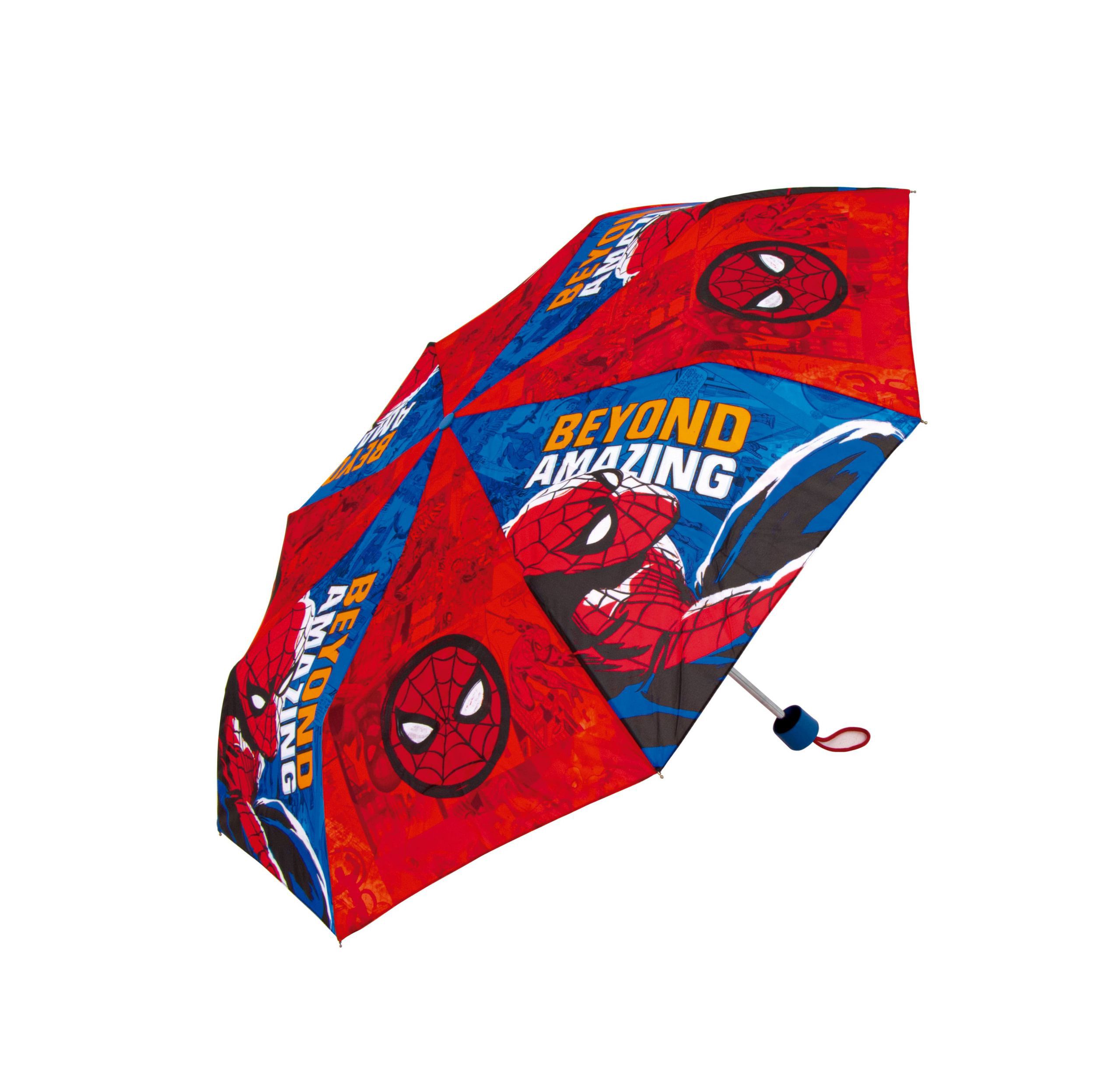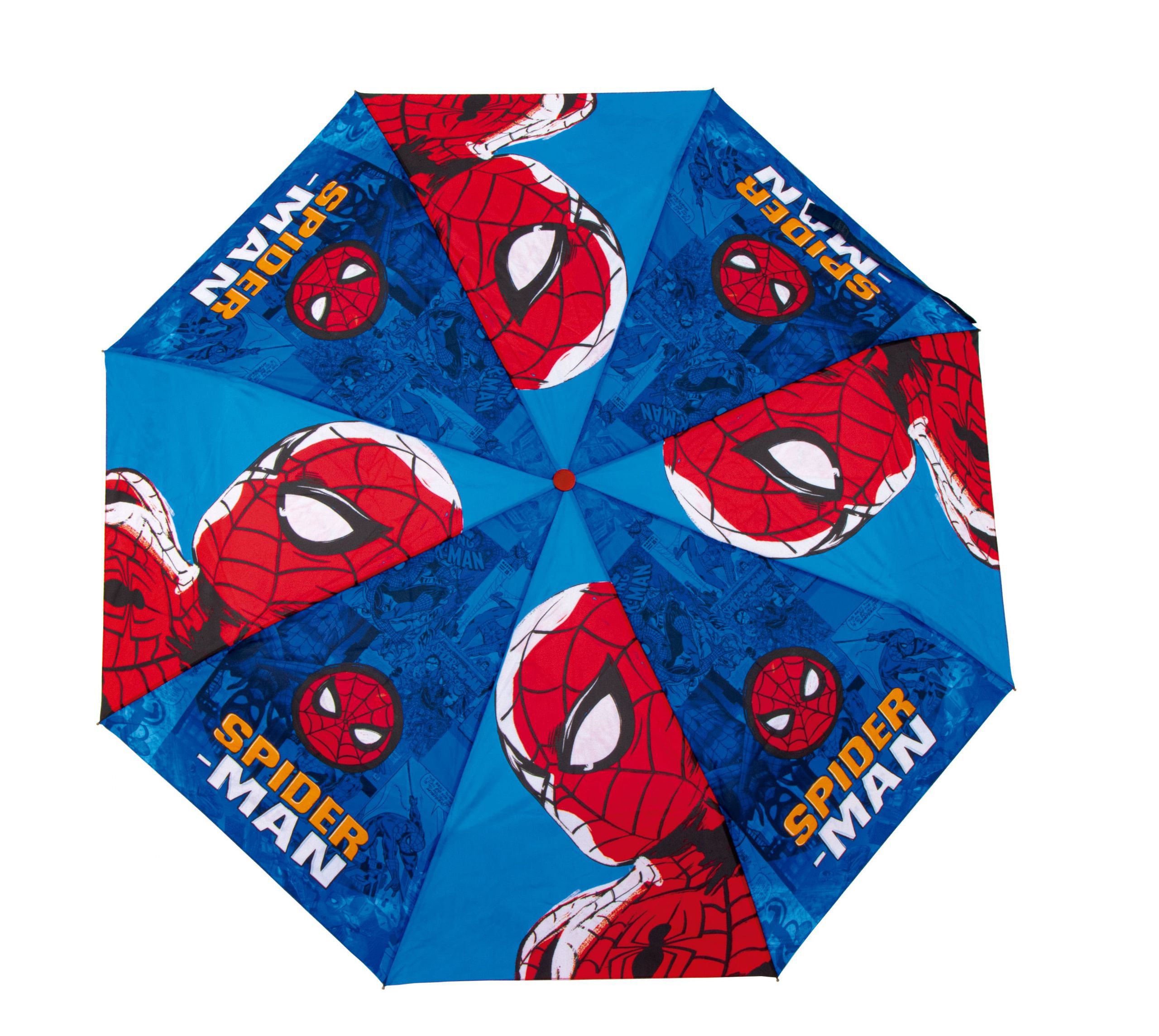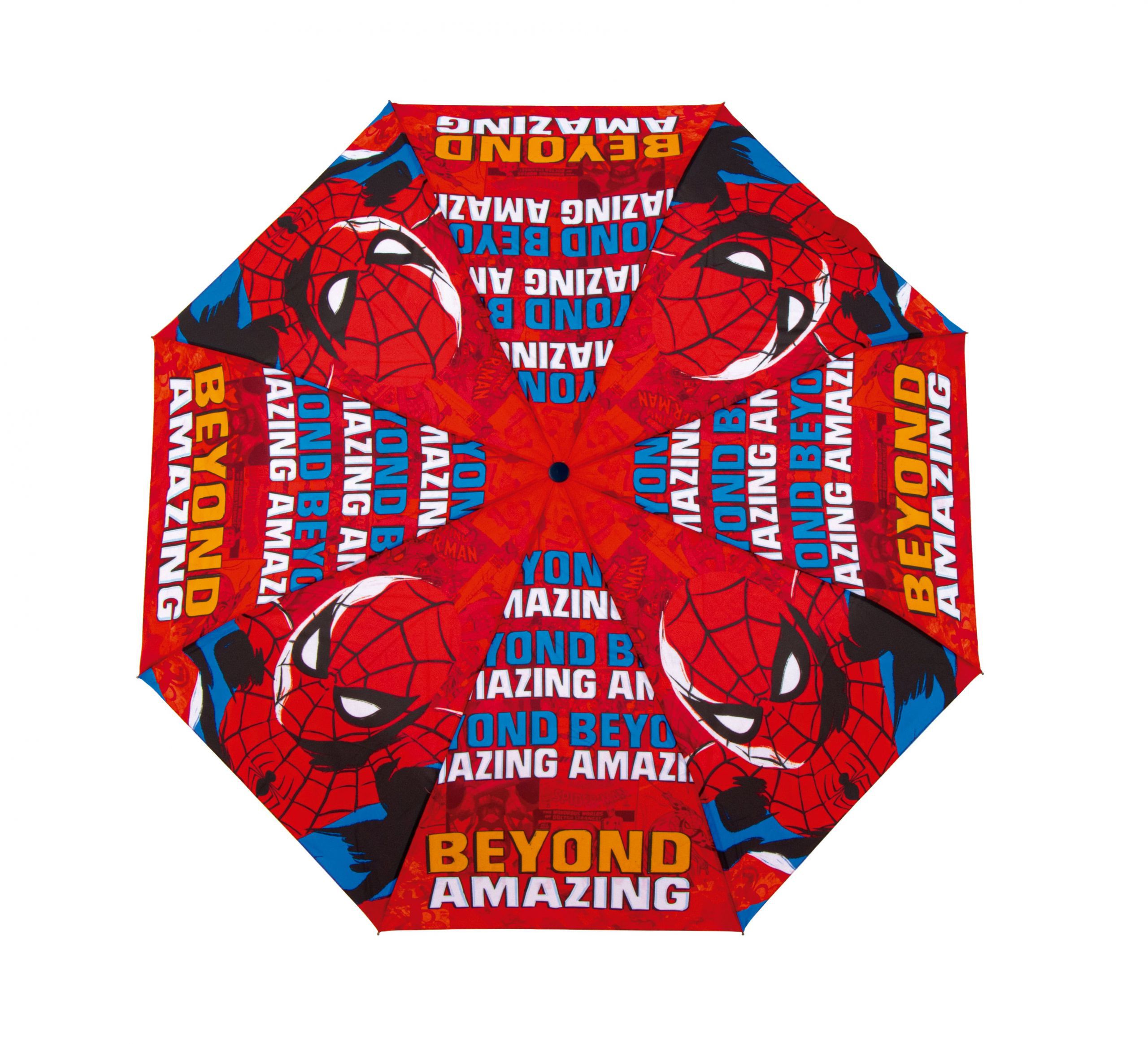 Paraguas de poliéster plegable de Spiderman, 8 paneles, diámetro 96cm, apertura manual. Modelo y/o color según disponibilidad. Indicar preferencia en apartado de información adicional.