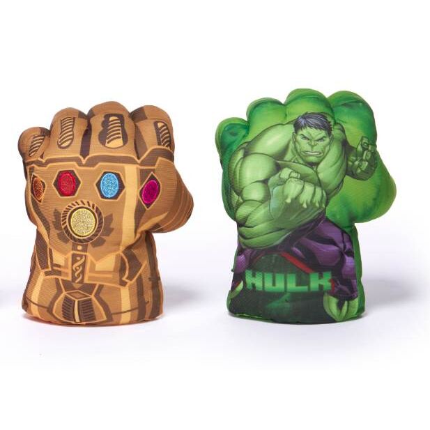 Guantelete Marvel de tus personajes favoritos: Hulk, Thanos, Iron Man… Con abertura para meter la mano y agarredera interior. Tamaño aproximado: 58cm. Modelo y/o color según disponibilidad. Indicar preferencia en apartado de información adicional.