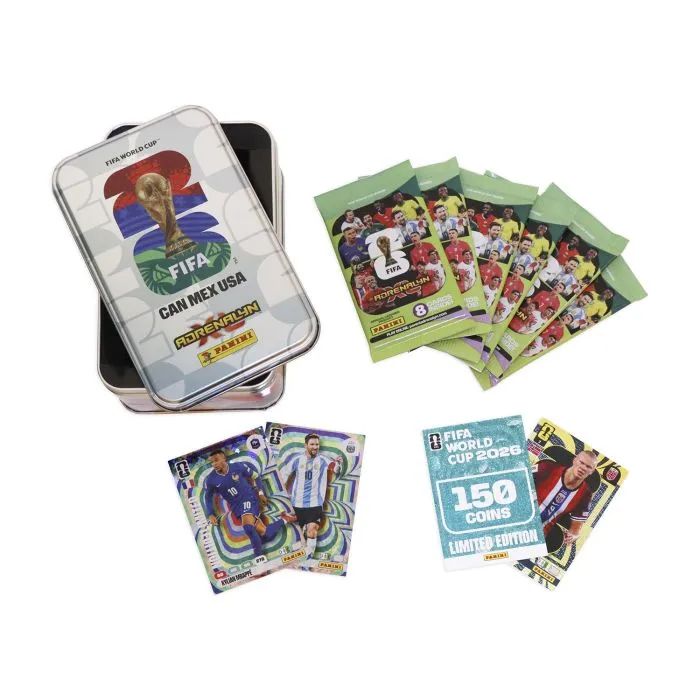 Hay 4 modelos de POCKET BOX diferentes! La entrega es aleatoria. Ya está aquí la experiencia de la FIFA WORLD CUP 2026™ Adrenalyn XL™! Con la nueva colección Adrenalyn XL™, vive al máximo la emoción del torneo. Con 630 cartas con gráficos impresionantes, materiales especiales y los mejores jugadores del mundo, esta colección te permite crear la plantilla de tus sueños, explorar múltiples modos de juego y desafiar a los aficionados de todo el mundo. Desde HEROE y FAN FAVOURITES hasta el debut de los GOLDEN BALLERS y las excepcionales cartas ETERNOS 22, cada sobre está lleno de sorpresas. Entra de lleno en la aventura ADRENALYN de la FIFA WORLD CUP 2026™! No la dejes escapar!