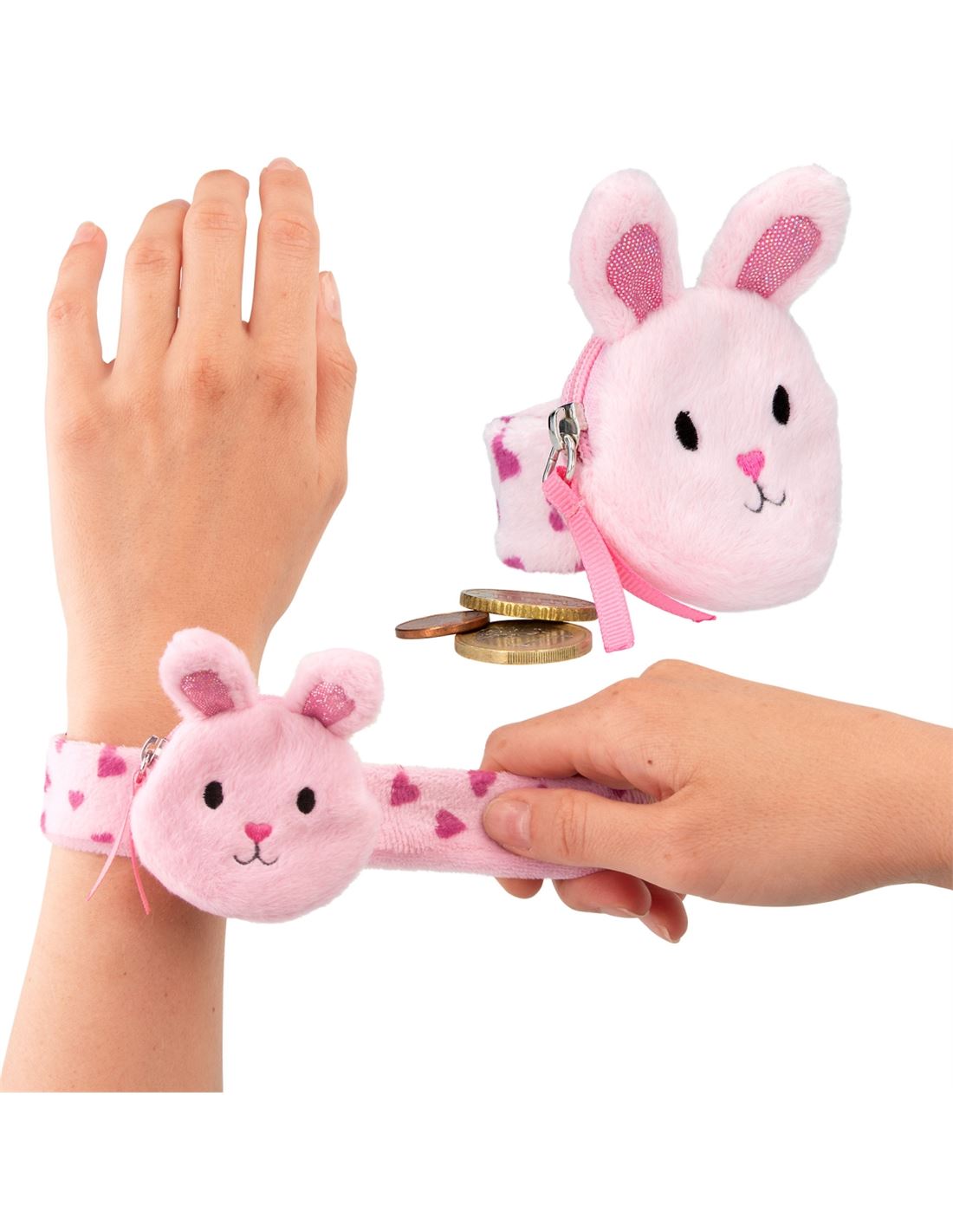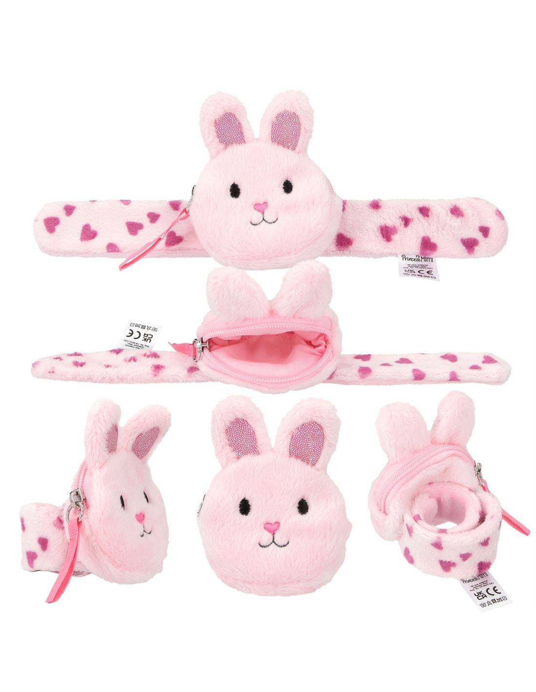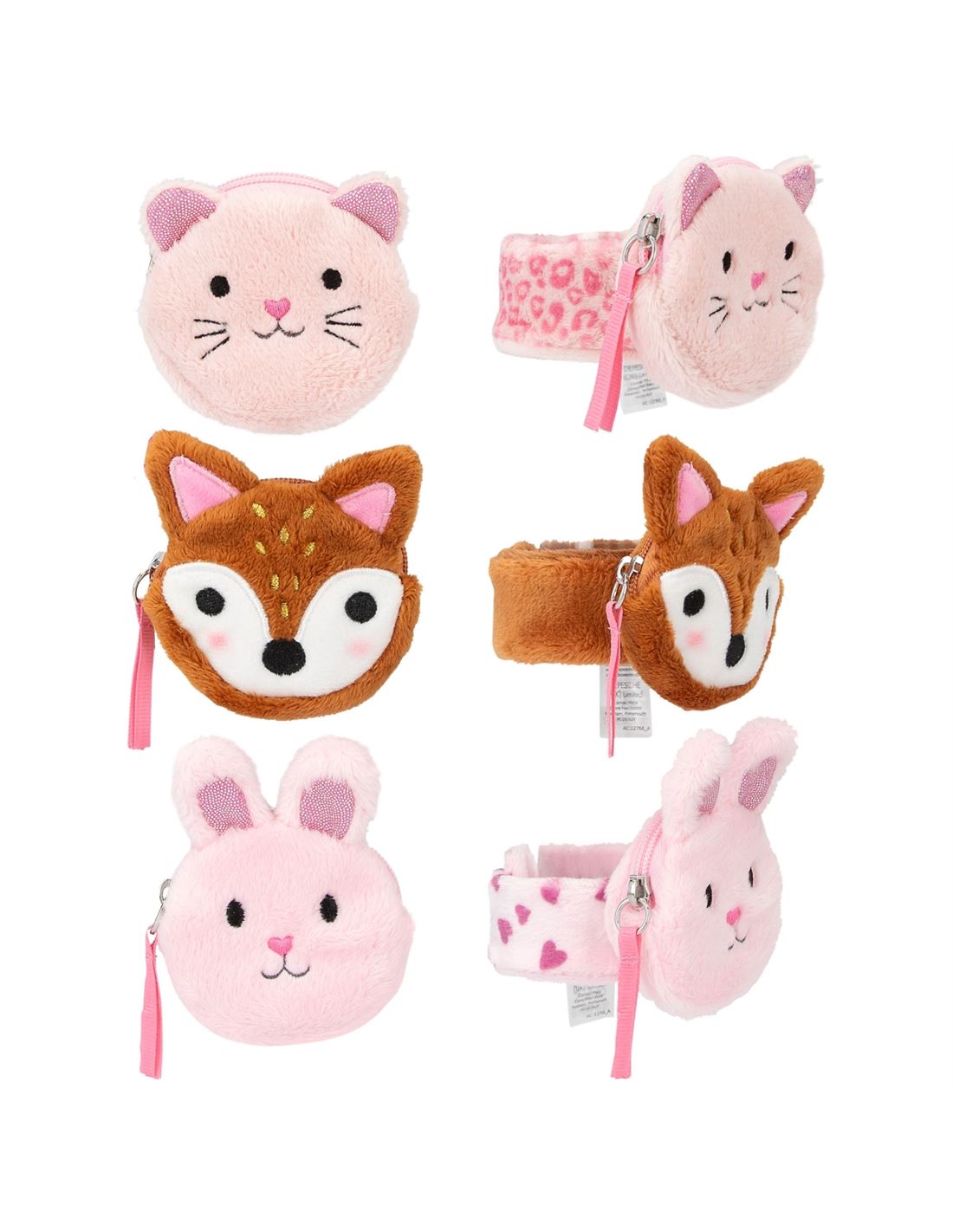 Monísimas y muy prácticas. Las suaves pulseras de Princess Mimi, con cierre clic-clac y monedero con cremallera en el peluche, se ajustan a la muñeca sin ningún esfuerzo. Disponibles en tres diseños monísimos: conejo, gato y corzo. Material: poliéster 100 por 100 edad recomendada: a partir de 18 meses. Envío según disponbilidad.