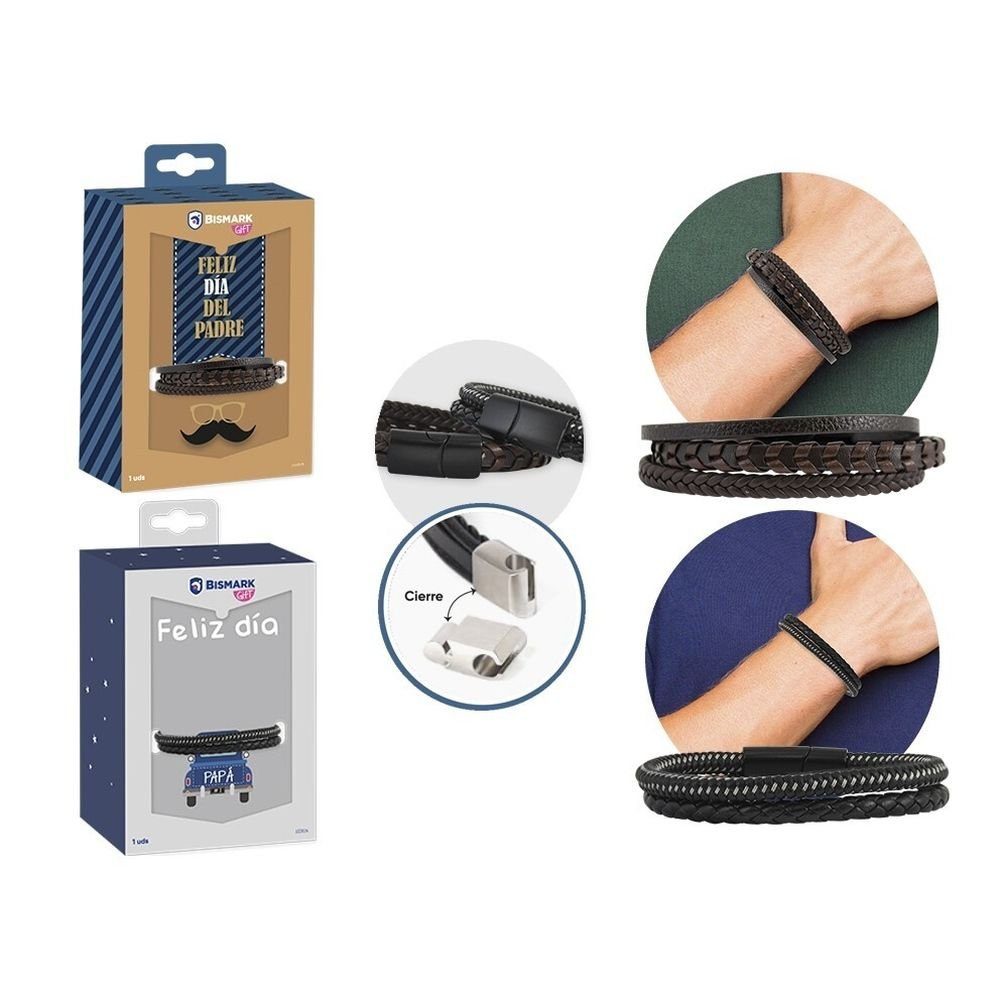 Pulsera de caballero simil piel de 21 cm cierre y adornos de acero inoxidable Diseño elegante y moderno, ideal para usar todos los días o en ocasiones especiales. Material resistente y cómodo, pensado para acompañar a papá en todas sus aventuras.