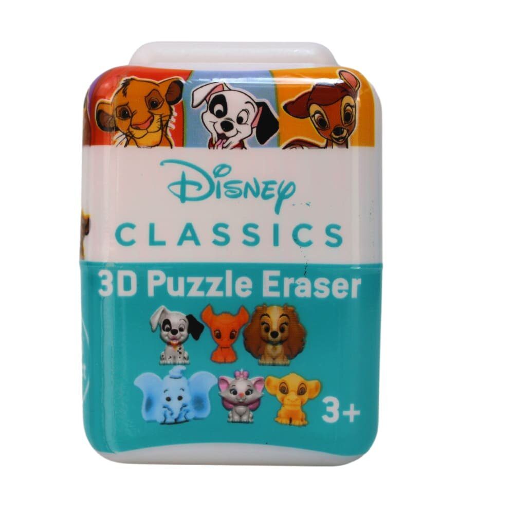 Tus personajes favoritos de Disney Classic se han convertido en lindos borradores 3D! Una vez que abras el bote y descubras cuál tienes, construye el borrador Disney a partir de las piezas del rompecabezas y agrégalo a tu estuche como si fuera una goma nueva, seguro que impresionarás a todos tus amigos.