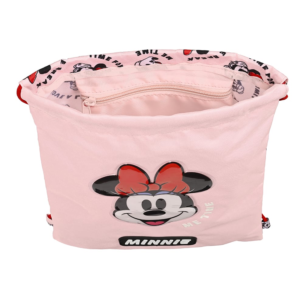 Saco Minnie Mouse Me Time Bolsillo interior con cremallera Cierre de seguridad anti-estrangulamiento Cierre mediante cordones 260x10x340 mm
