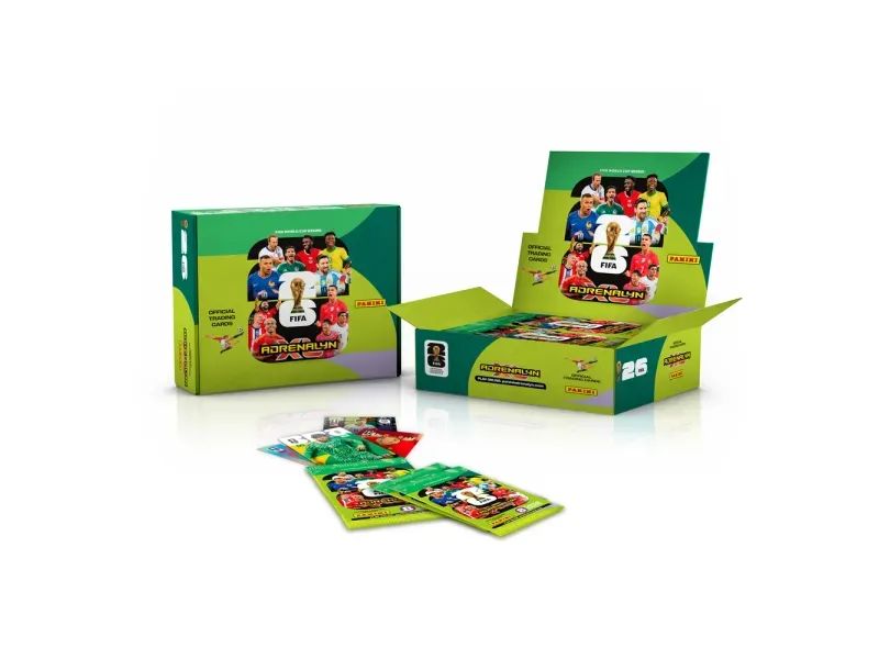 Ya está aquí la experiencia de la FIFA WORLD CUP 2026™ Adrenalyn XL™! Con la nueva colección Adrenalyn XL™, vive al máximo la emoción del torneo. Con 630 cartas con gráficos impresionantes, materiales especiales y los mejores jugadores del mundo, esta colección te permite crear la plantilla de tus sueños, explorar múltiples modos de juego y desafiar a los aficionados de todo el mundo. Desde HEROE y FAN FAVOURITES hasta el debut de los GOLDEN BALLERS y las excepcionales cartas ETERNOS 22, cada sobre está lleno de sorpresas. Entra de lleno en la aventura ADRENALYN de la FIFA WORLD CUP 2026™! Cada sobre contiene 8 cards. No la dejes escapar!