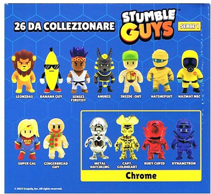 Colección de figuras Panini del famoso videojuego Stumble Guys. Hay 26 figuras para coleccionar.