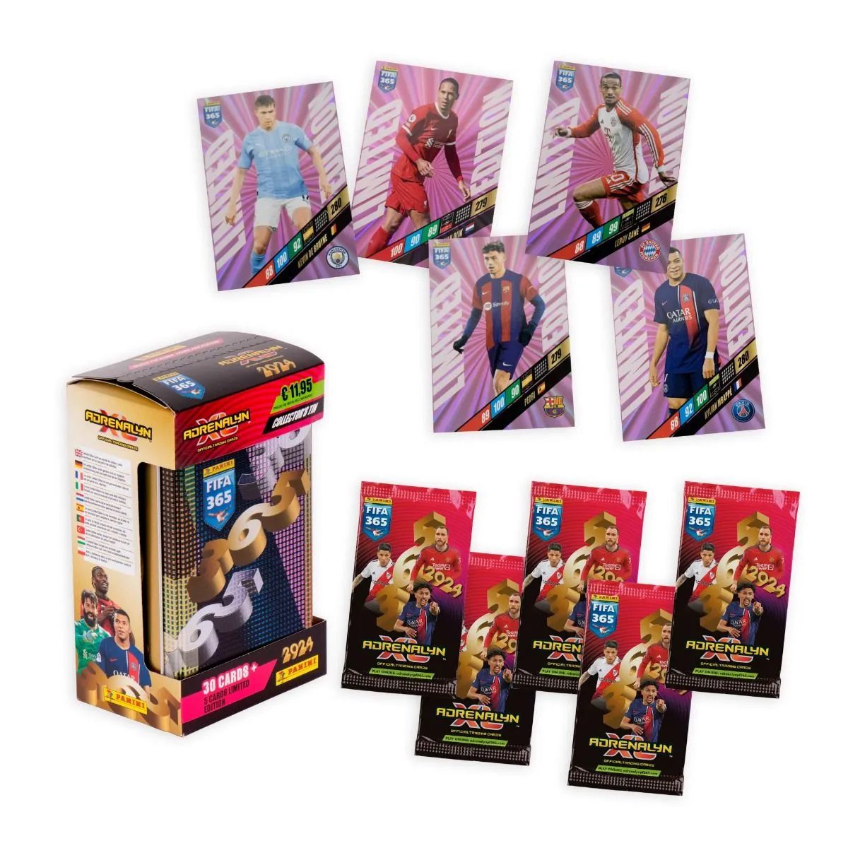 Hazte ya con la COLLECTOR’S TIN de la magnífica colección de Trading Cards ADRENALYN FIFA 365 TCG 2024 que te permite conseguir 30 cards y 5 cards LIMITED EDITION exclusivas: PEDRI (FC Barcelona) SANÉ (Bayern) DE BRUYNE (Manchester City) MBAPPÉ (PSG) VAN DIJK (Liverpool) Ya está aquí el momento esperado desde hace meses por muchos coleccionistas, porqué llega de nuevo la colección que te brinda lo mejor de lo mejor del fútbol internacional. Aquí está la nueva edición de PANINI FIFA 365 ADRENALYN XL™, focalizada en el 2024 y como siempre lleno de cartas espectaculares. Una súper colección con más de 450 cartas y 20 clubes para coleccionar de todo el mundo! No te pierdas las nuevas series Double Trouble, Homegrown y Time Machine. Y además, encuentra las 8 cartas Top Master y card INVINCIBLE. No la dejes escapar!